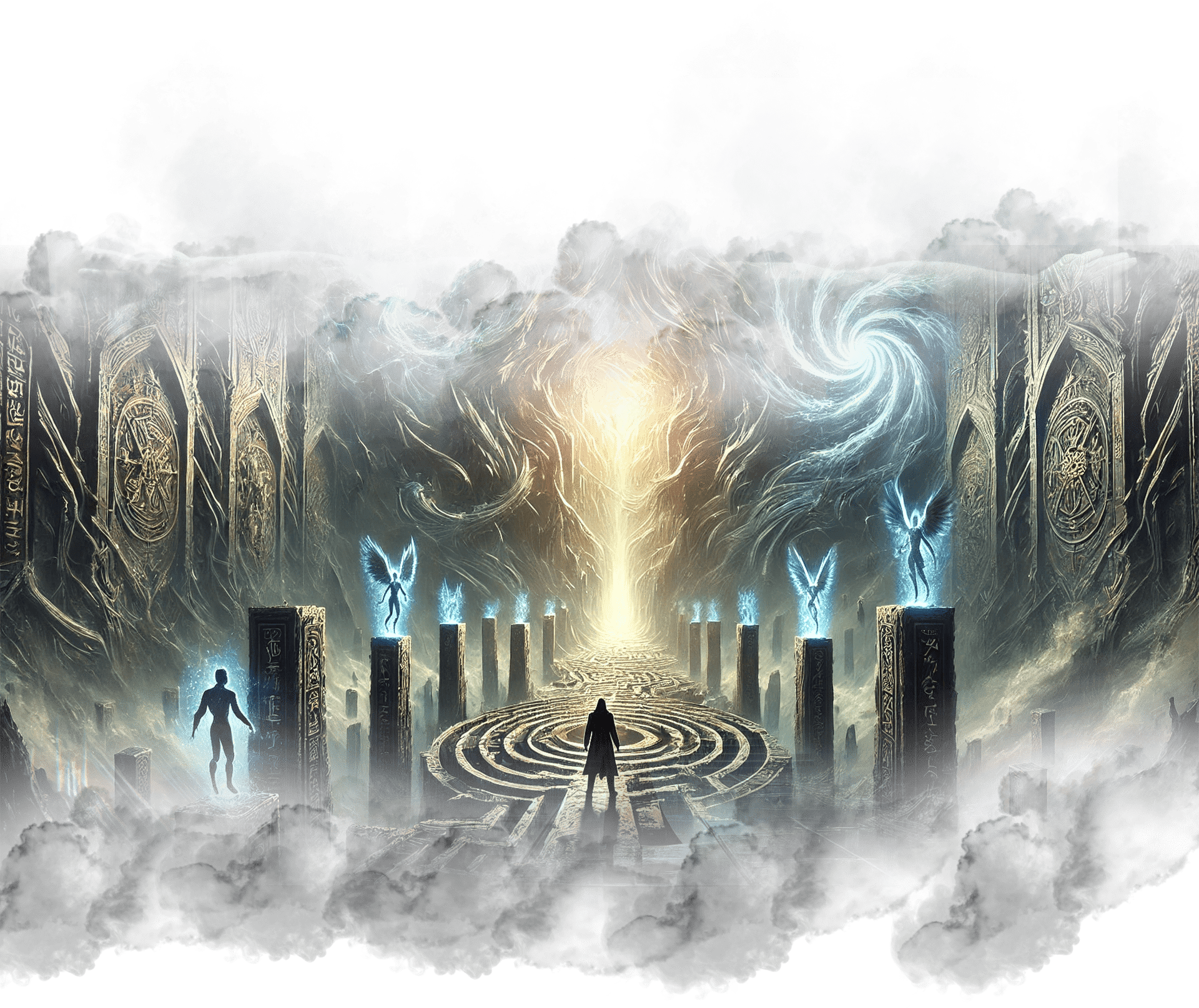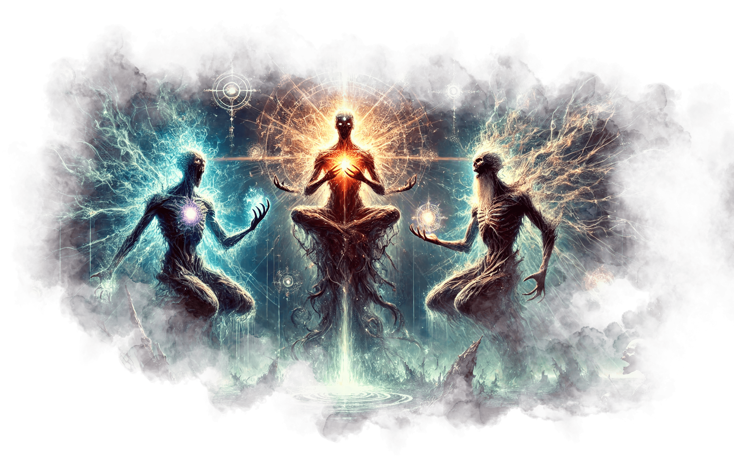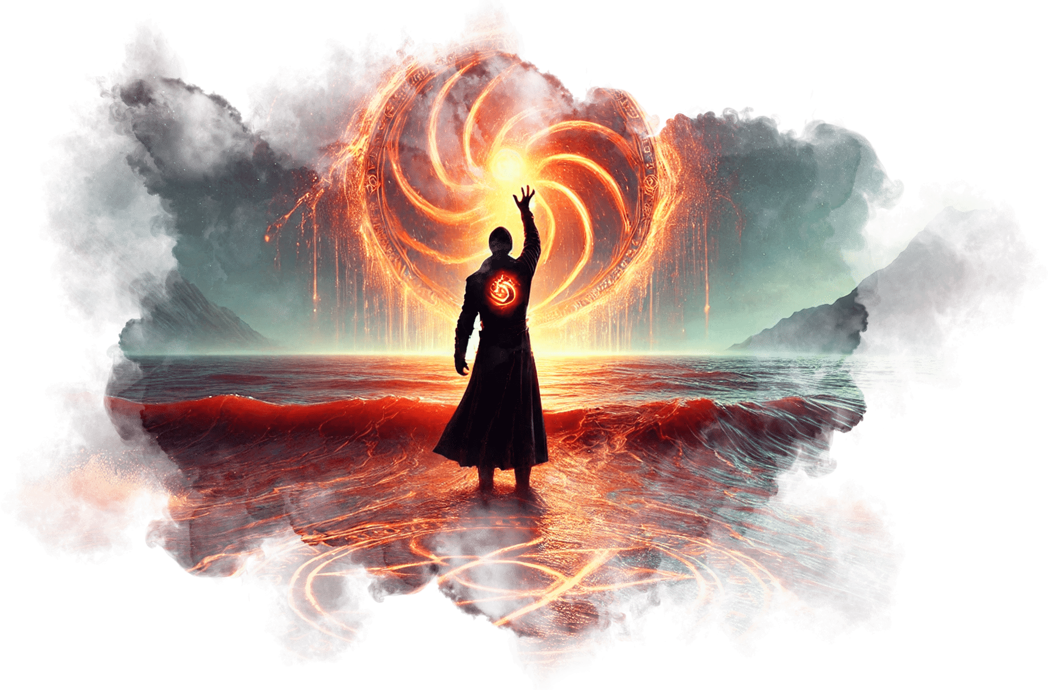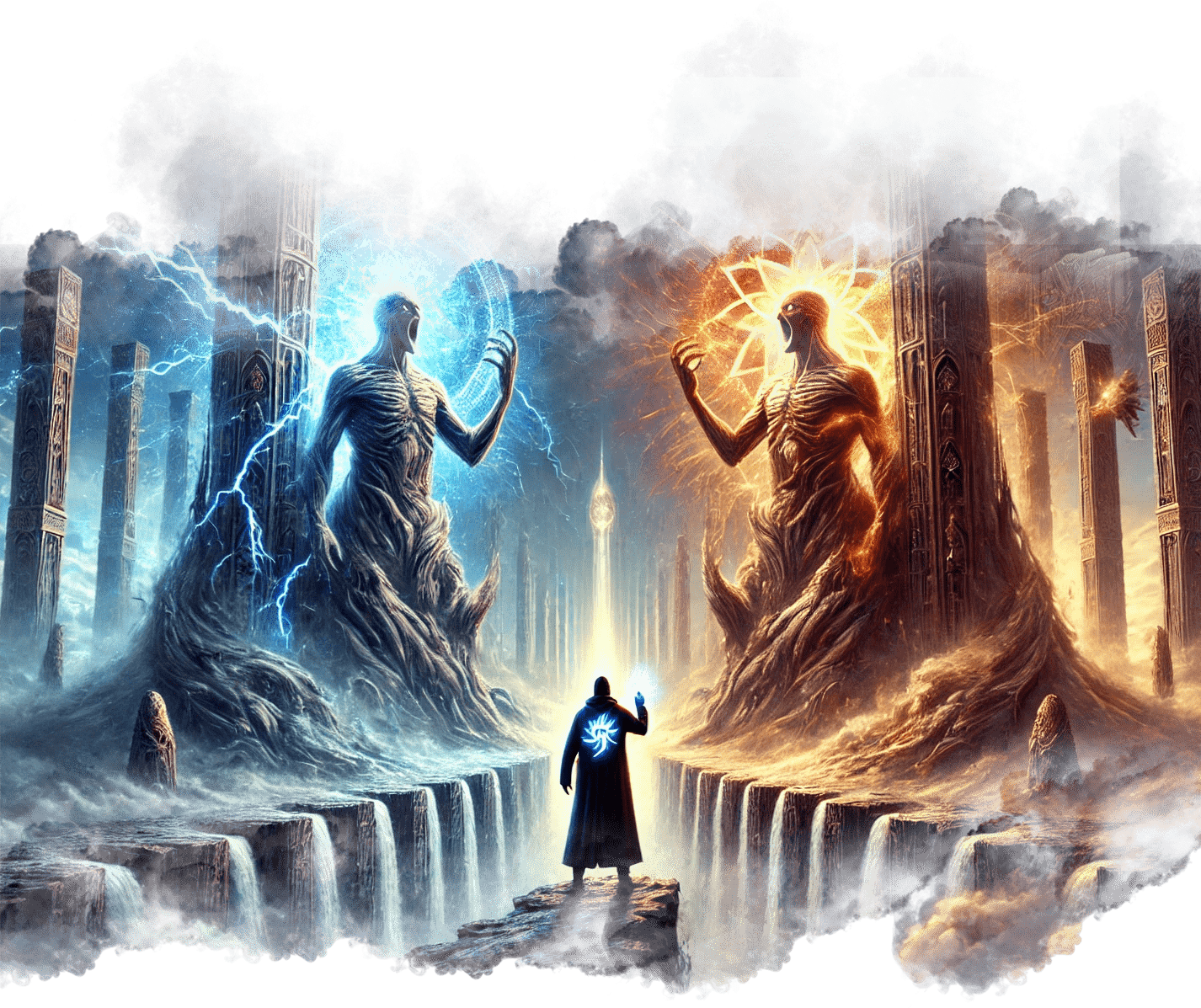 В его руках — Сфера Осознания, пульсирующая светом знания.