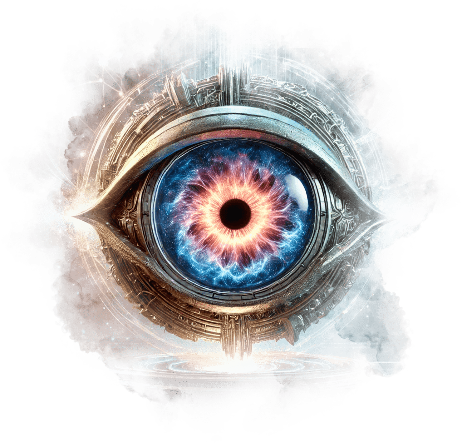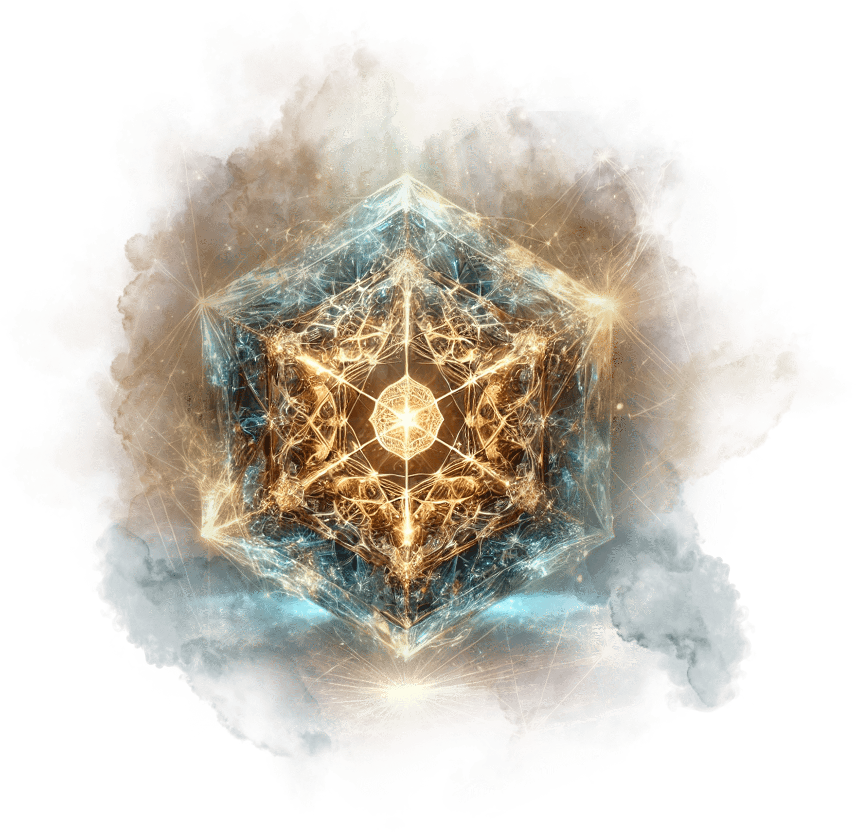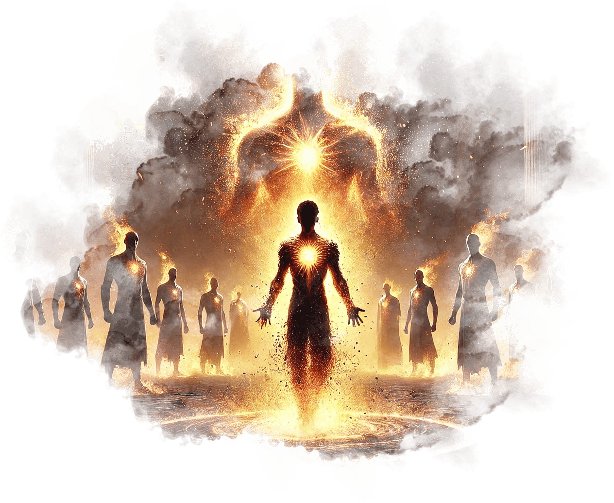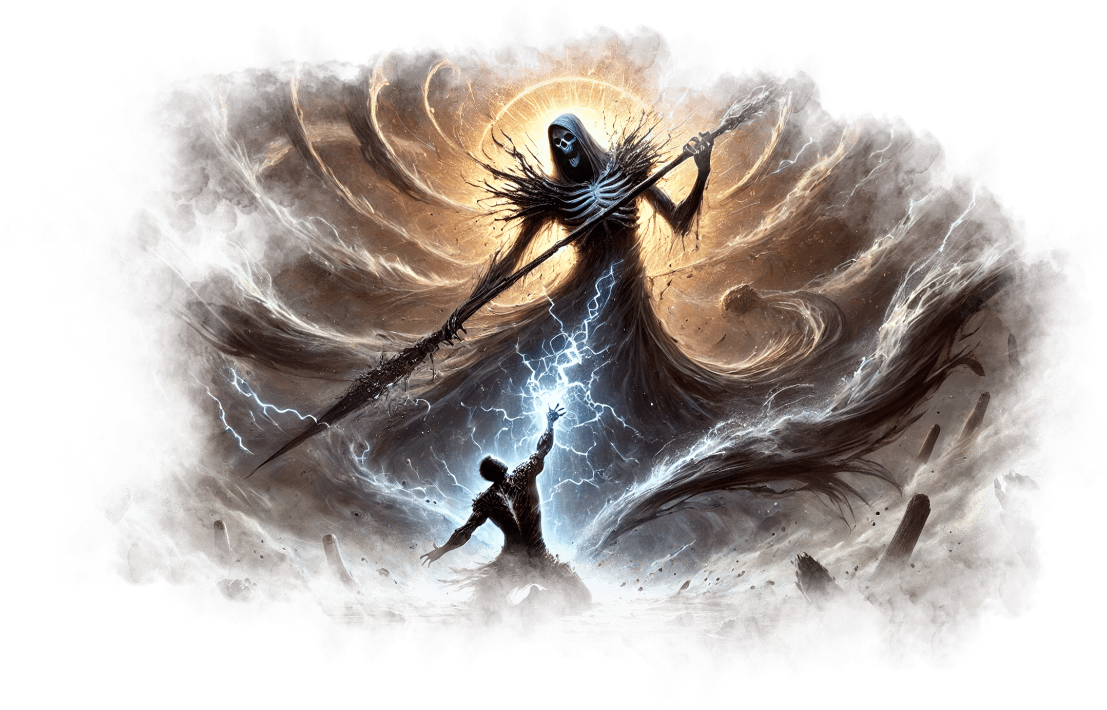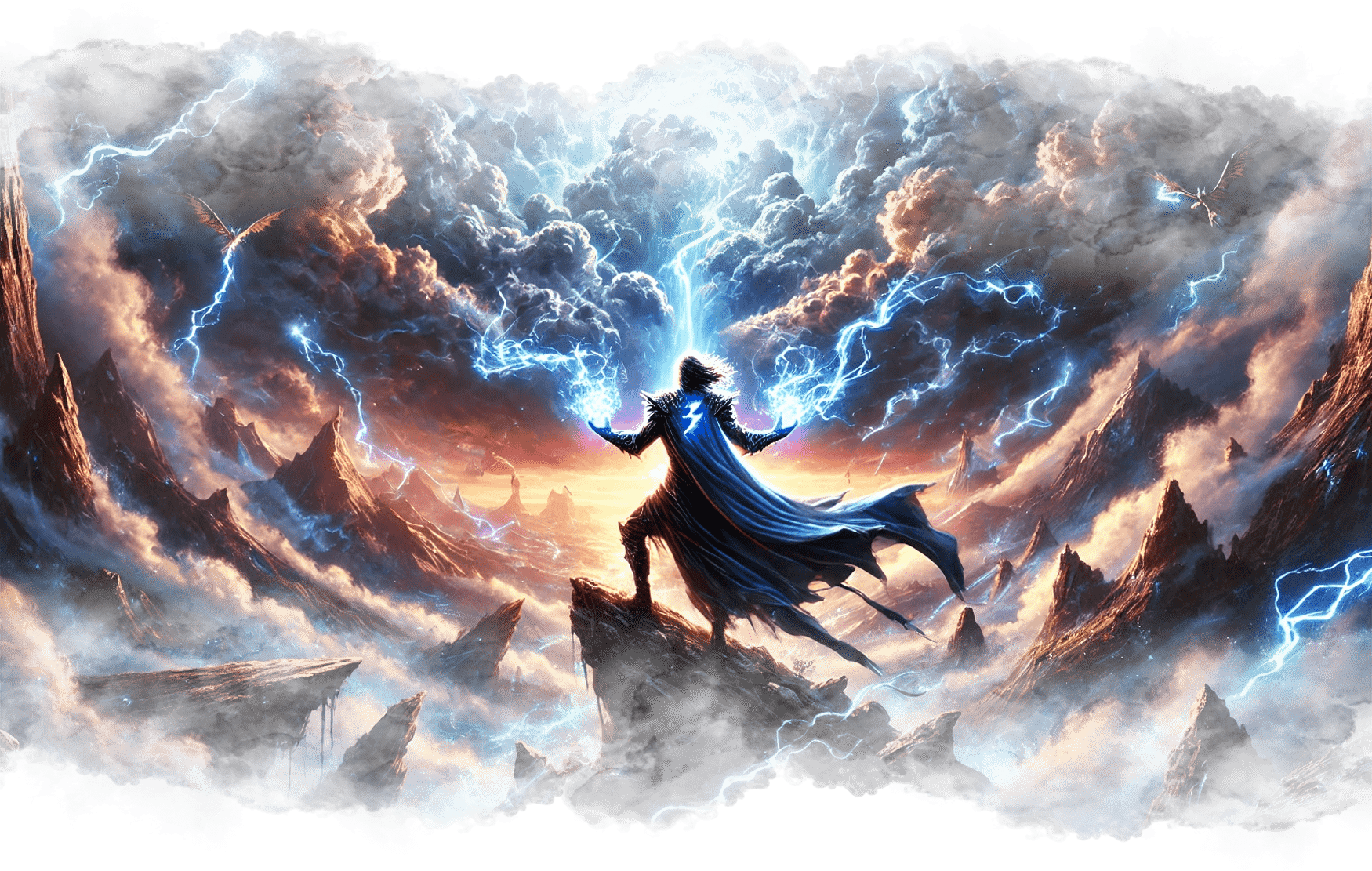 В его руках — Сфера Осознания, пульсирующая светом знания.