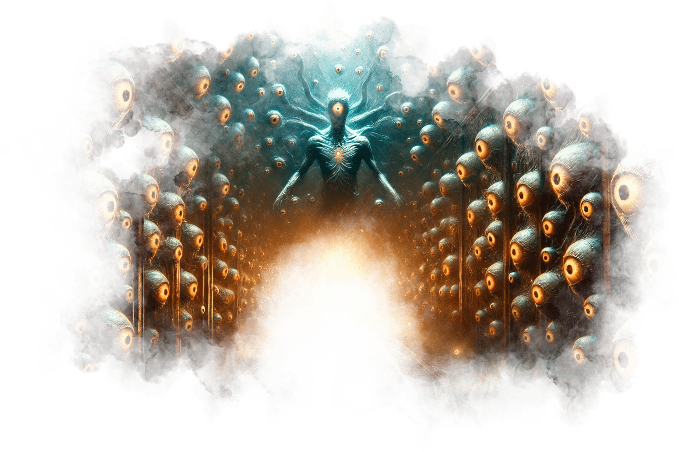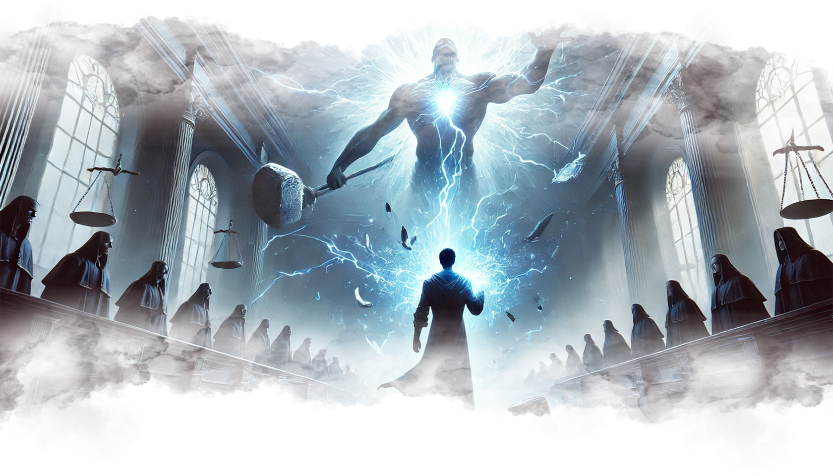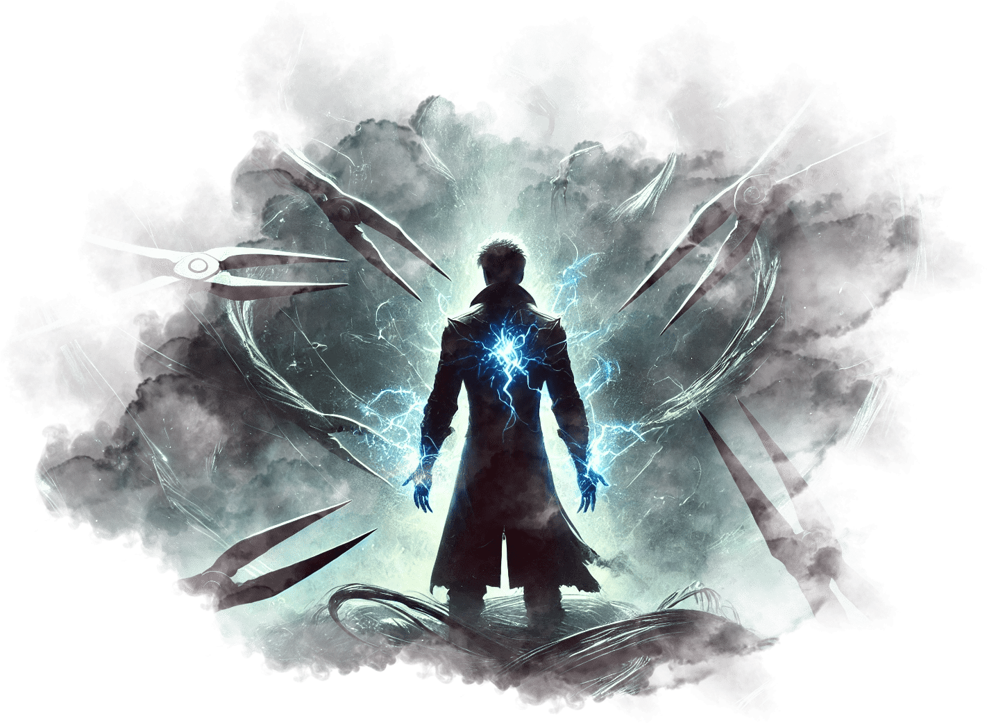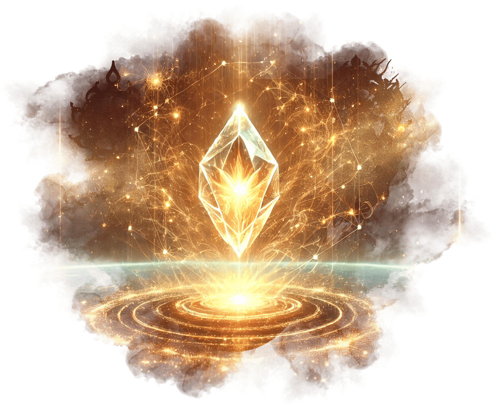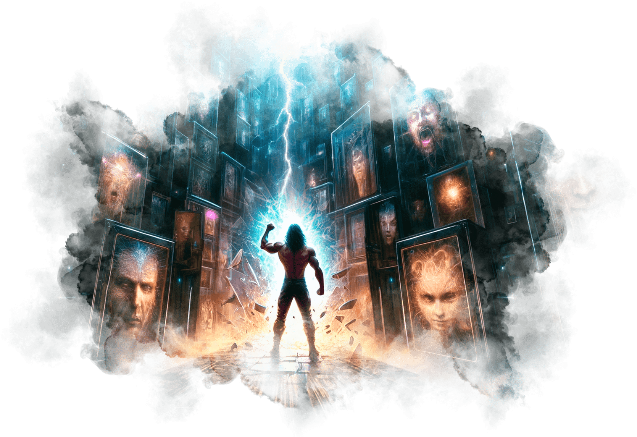 В его руках — Сфера Осознания, пульсирующая светом знания.