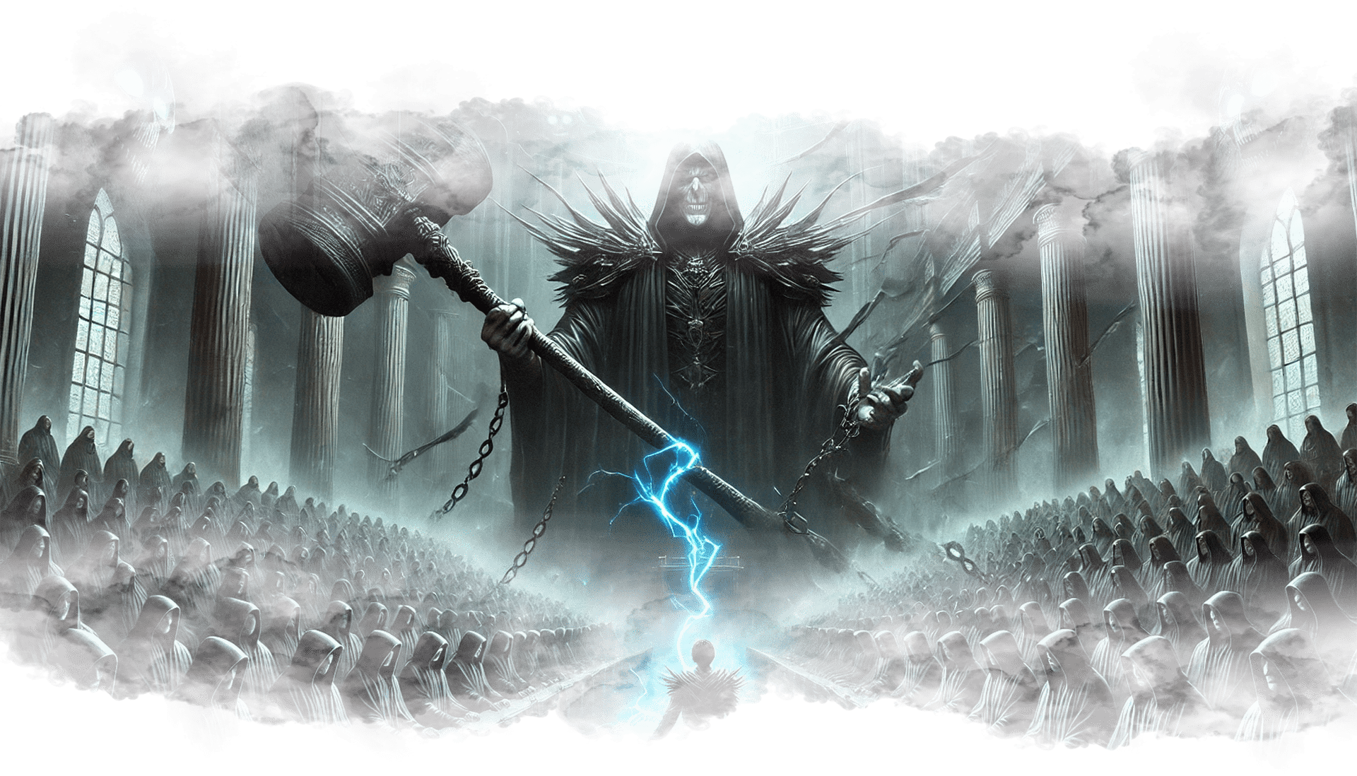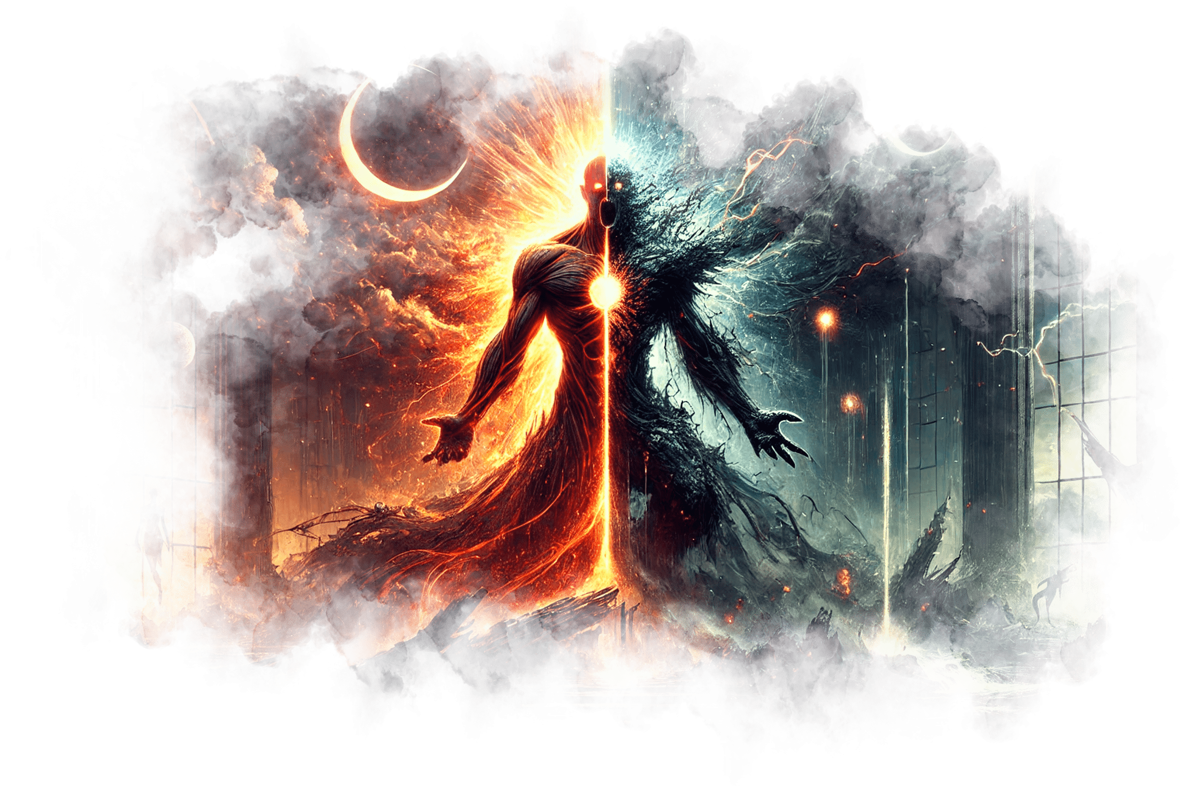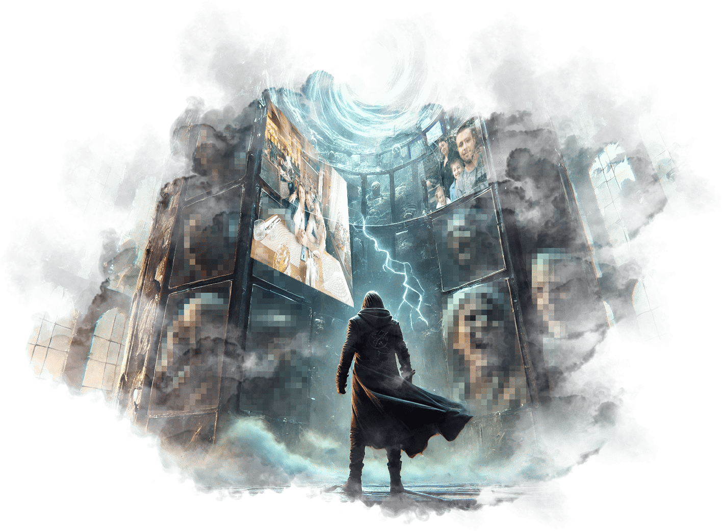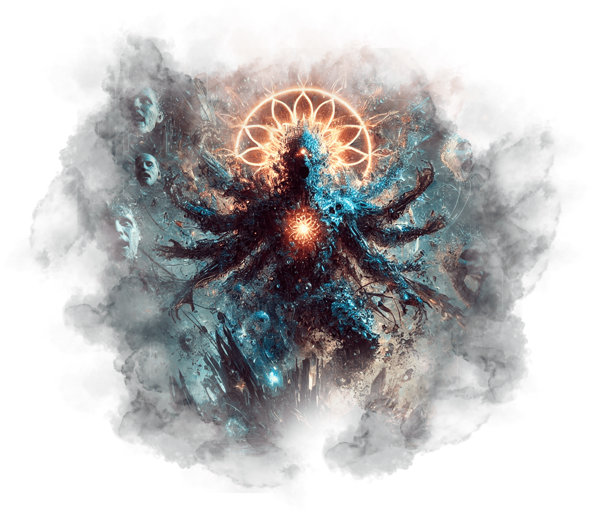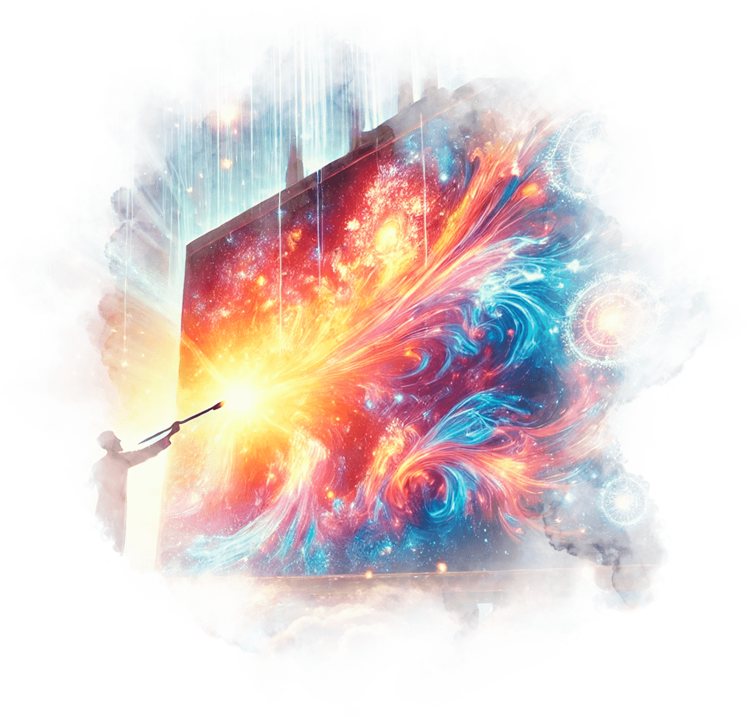 В его руках — Сфера Осознания, пульсирующая светом знания.