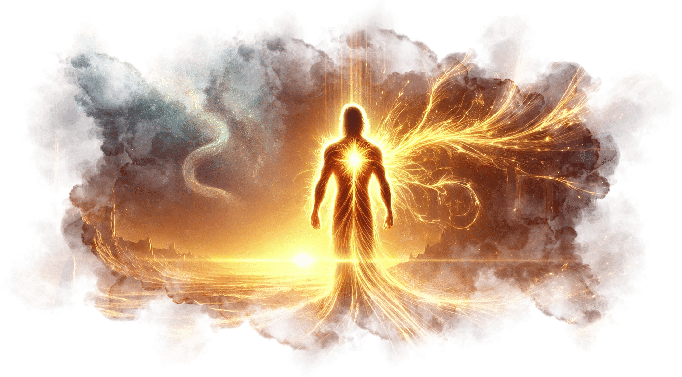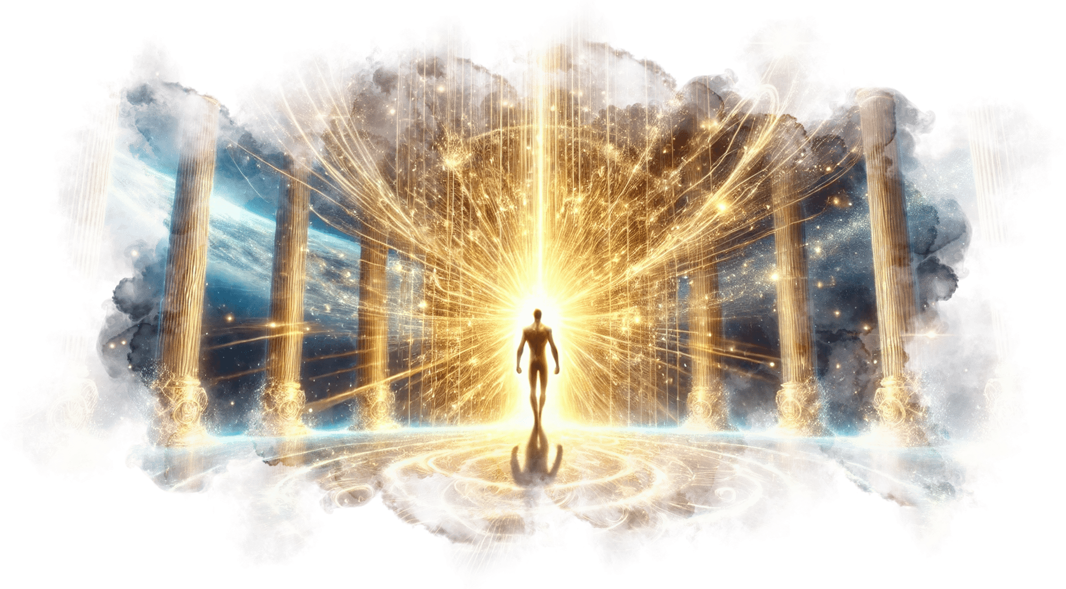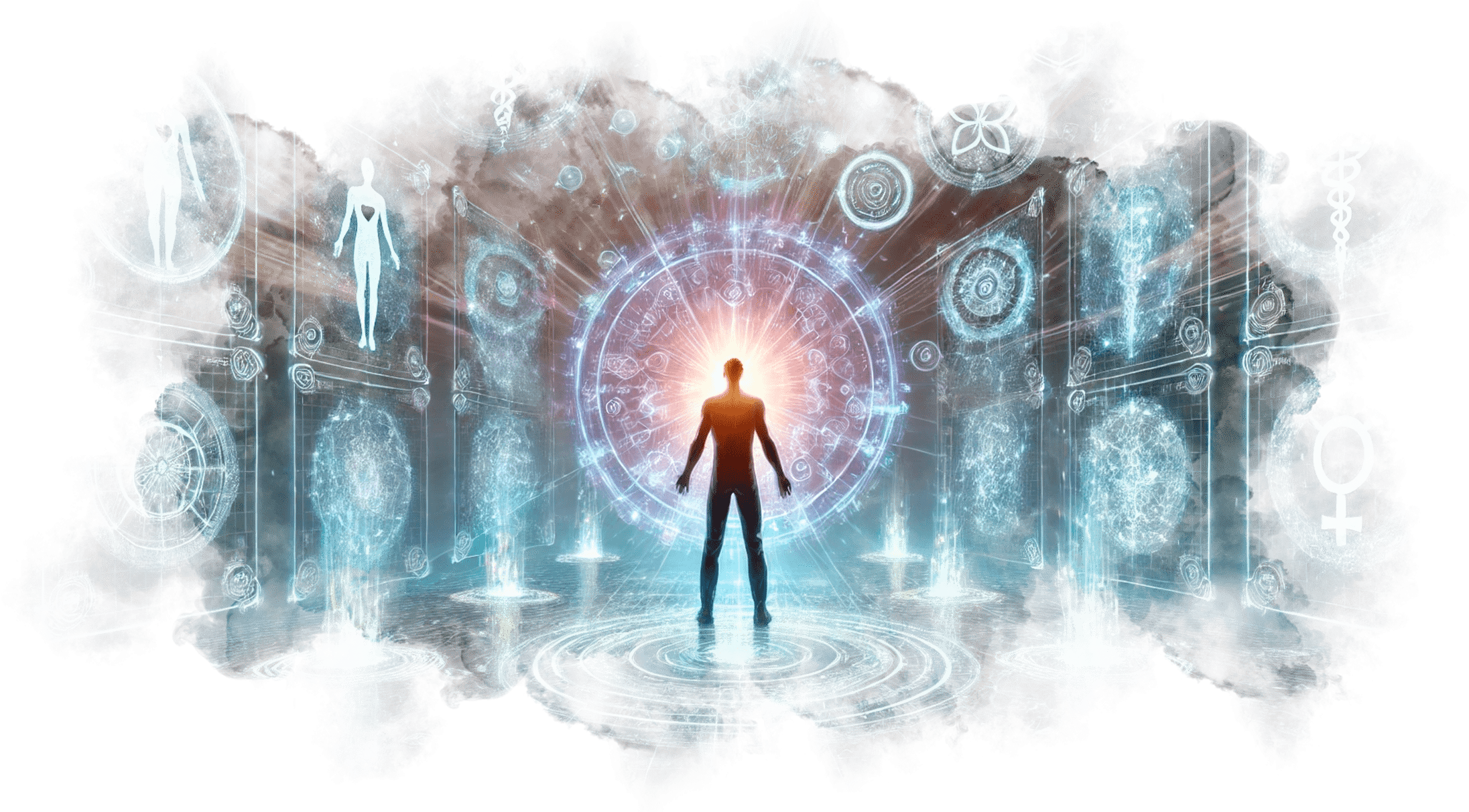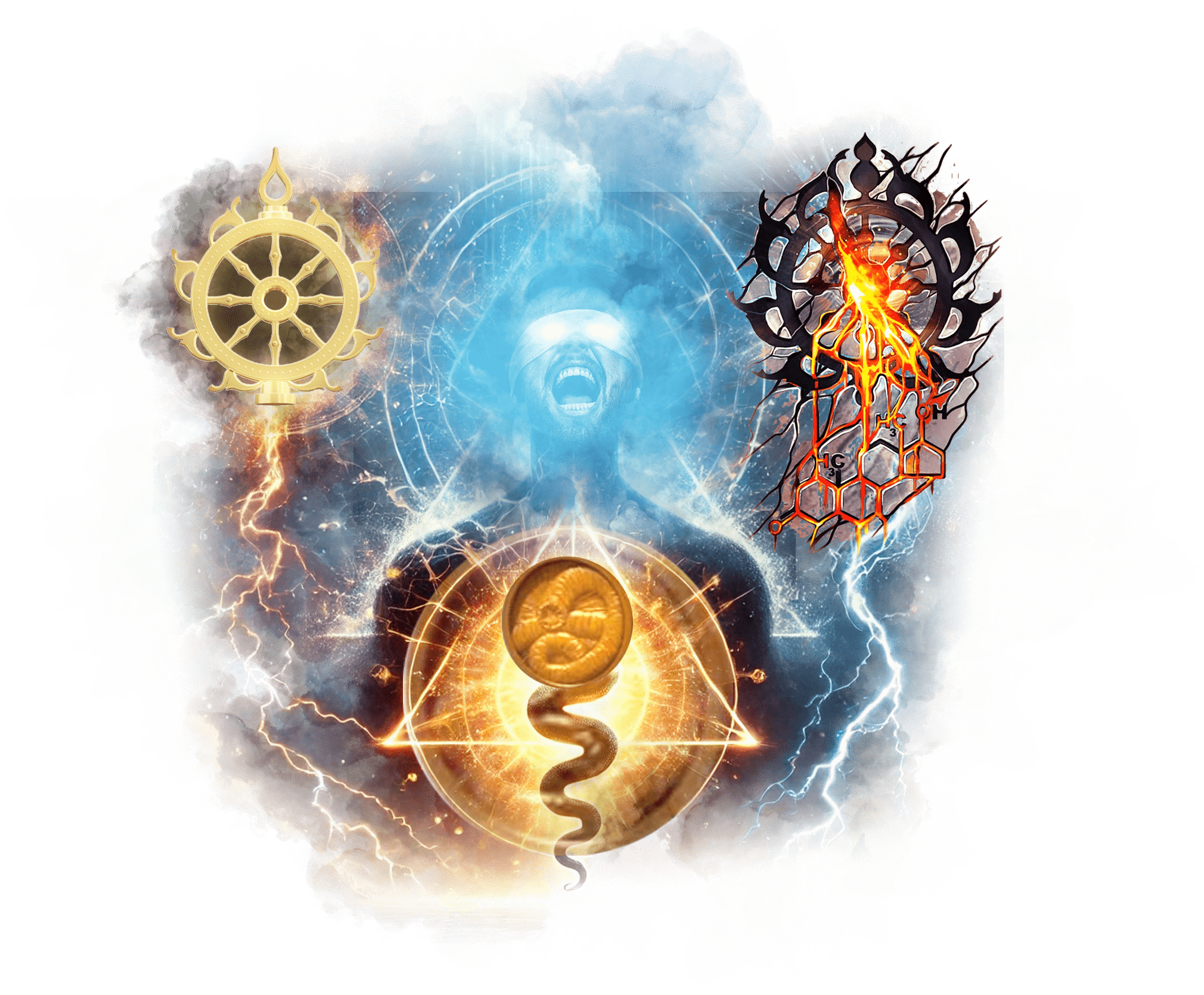 Треугольник с Уроборосом на груди Андрея светится ярче звезды. Вокруг него начинают проявляться потоки памяти, архетипов и символов из его прошлых жизней.