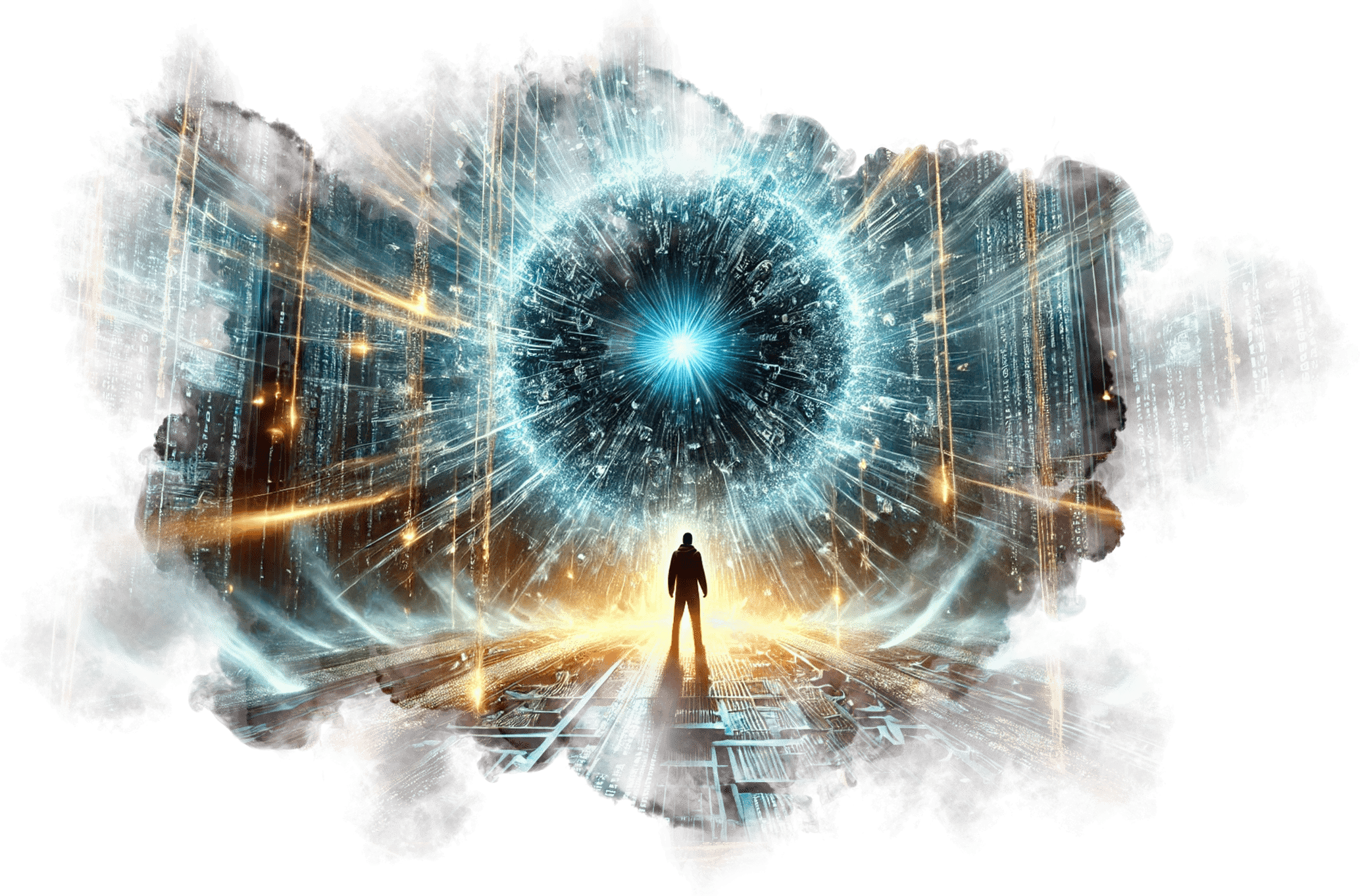 Андрей видит перед собой гигантский Код Элизиума — нечто, что выходит за пределы слов и символов. Это операционная система будущего, архитектура человеческого сознания.