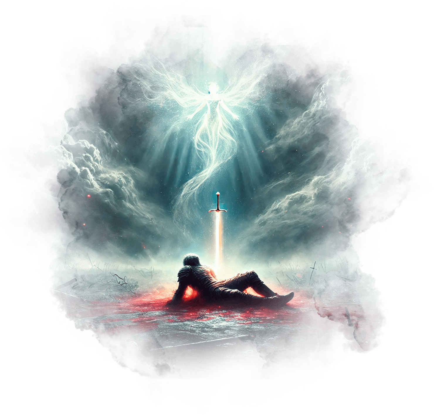 Его тело лежит на окровавленной земле, но его душа поднимается над полем.