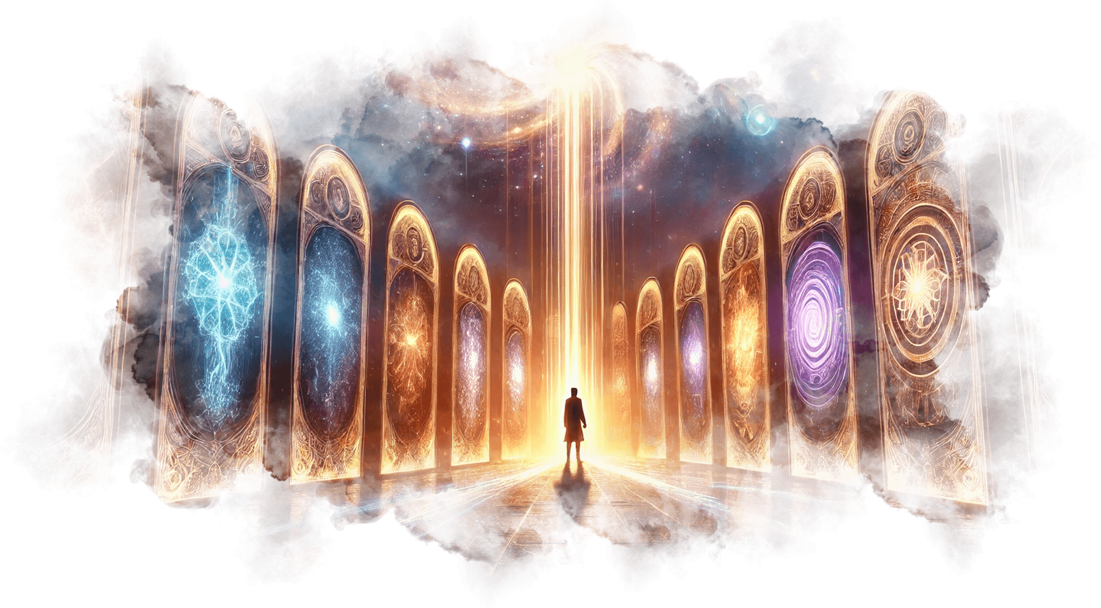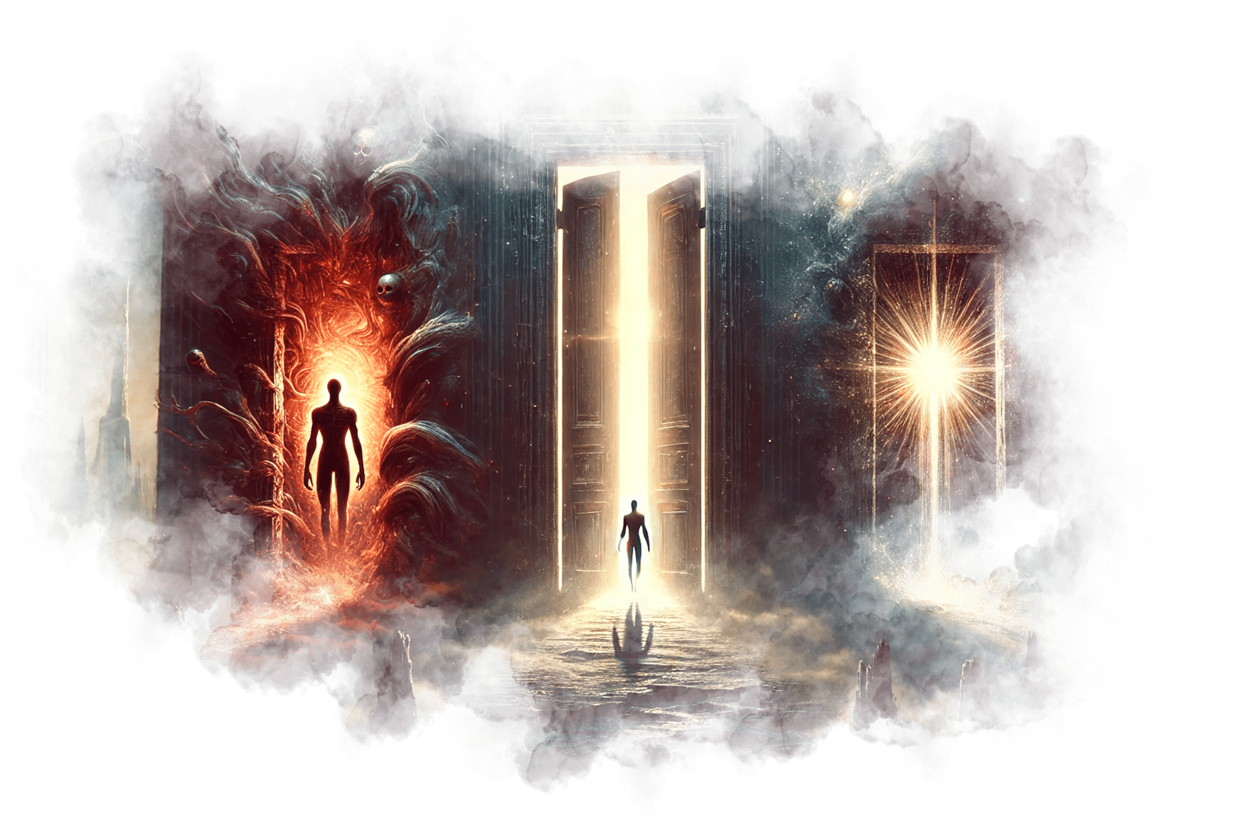 Перед Андреем появляются двери, каждая из которых ведёт в его прошлую жизнь. Они открываются одна за другой, и Андрей проходит сквозь них.