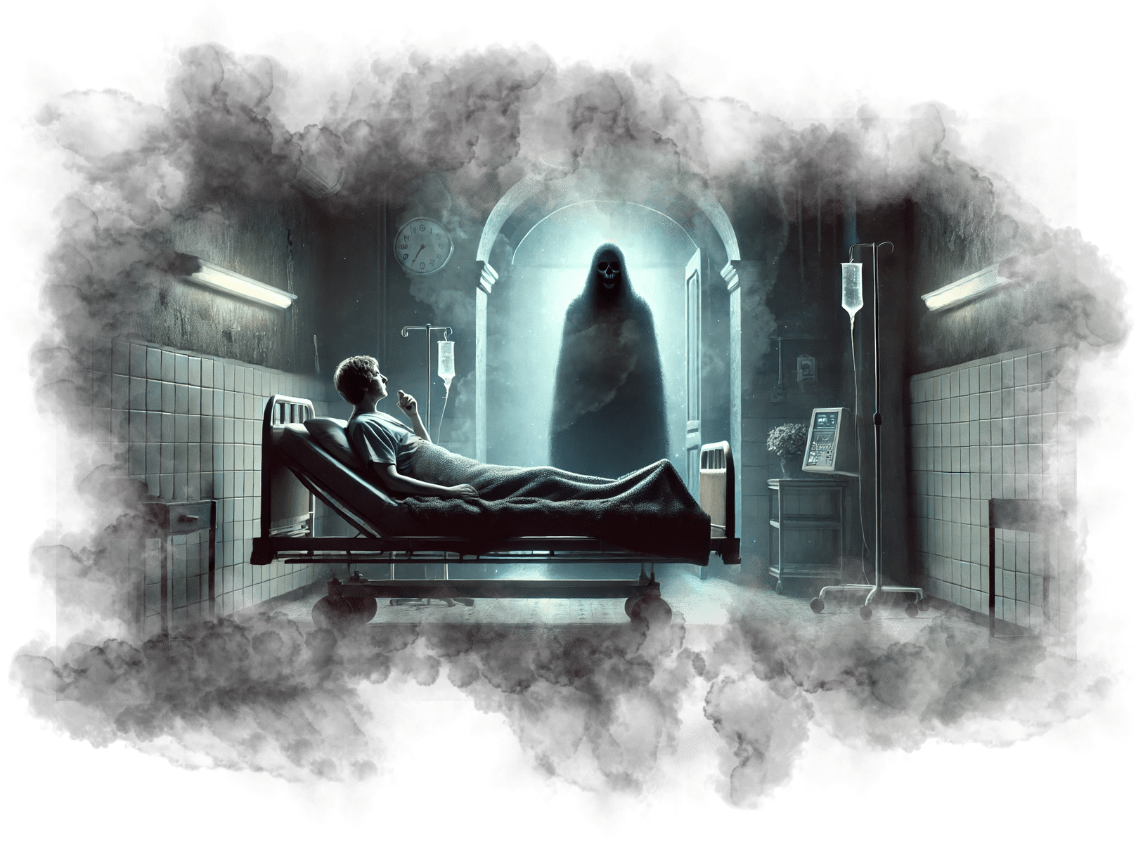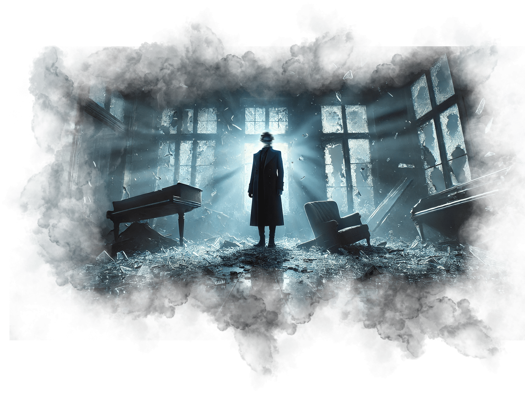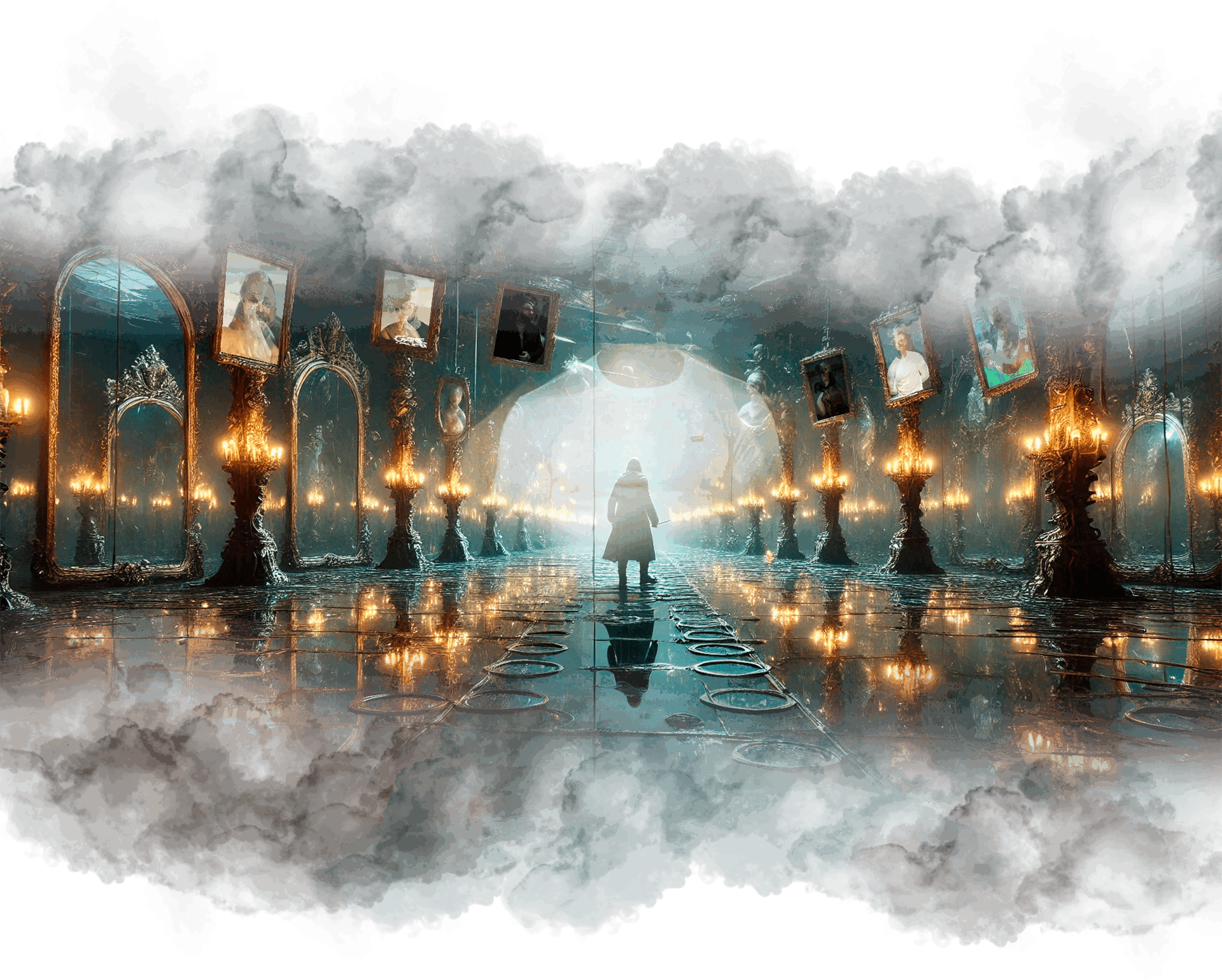 Андрей шагает вперёд и оказывается в белом, бесконечном пространстве. Здесь нет горизонта, нет границ, нет даже времени — только абсолютная чистота и свет.