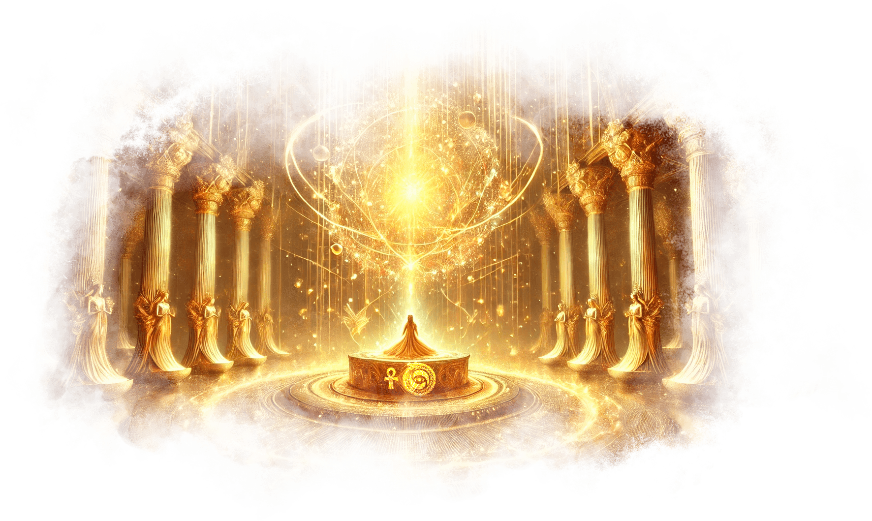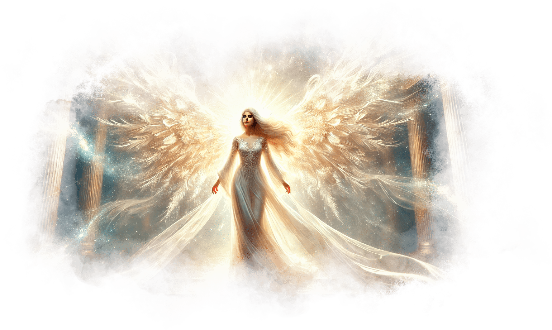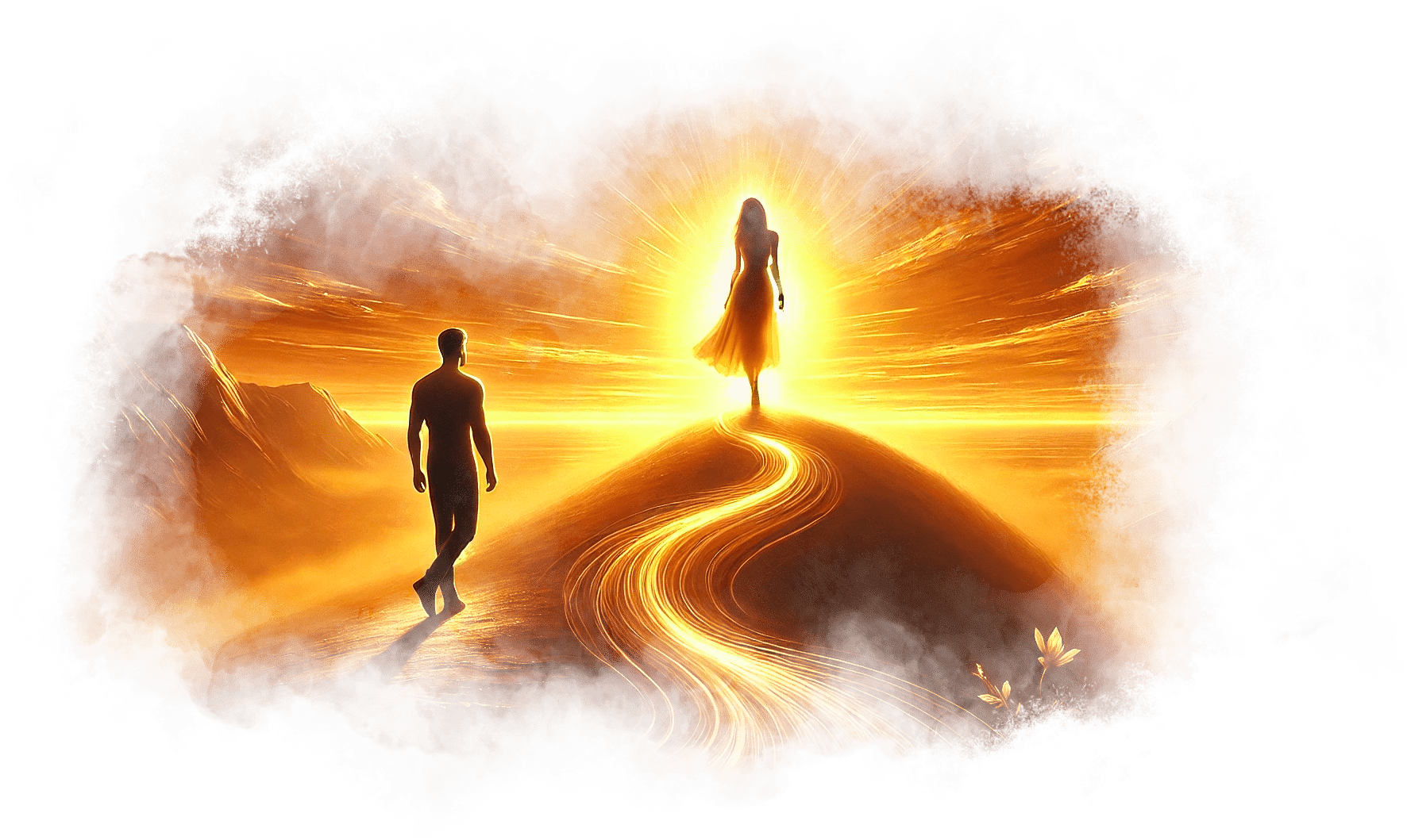 Он улыбается, его фигура медленно поднимается и растворяется в воздухе, оставляя за собой тонкую золотую нить, которая опускается в ладони Гали.