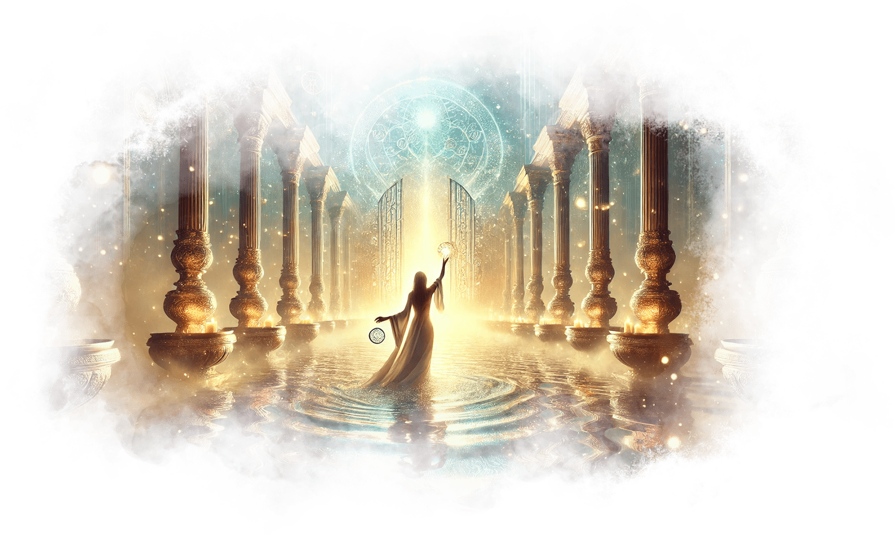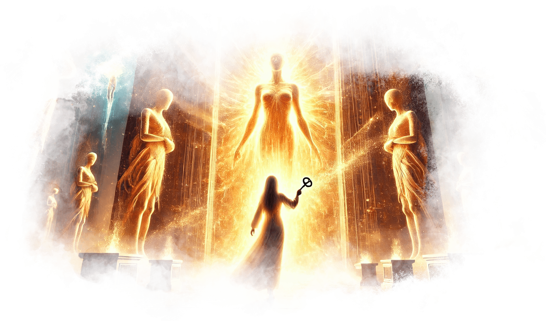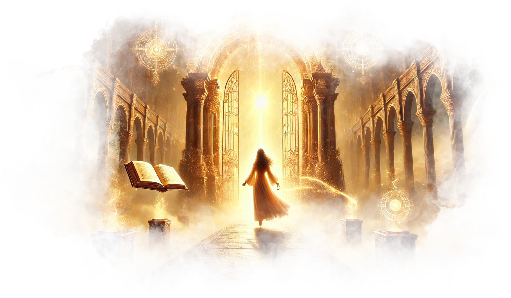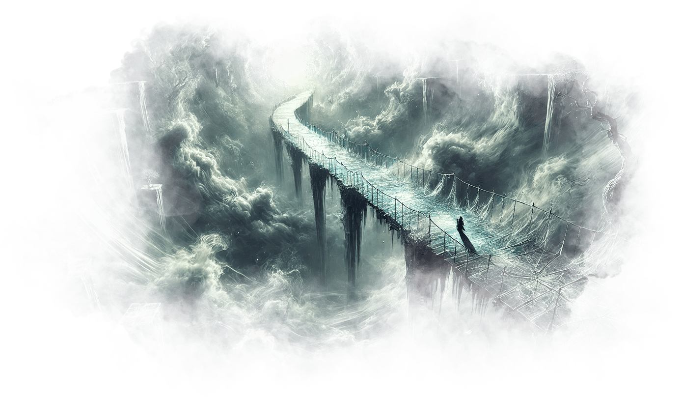 Свет пробивается сквозь полумрак, открывая перед ней новую дорогу — мост, устланный звёздами и золотыми нитями.