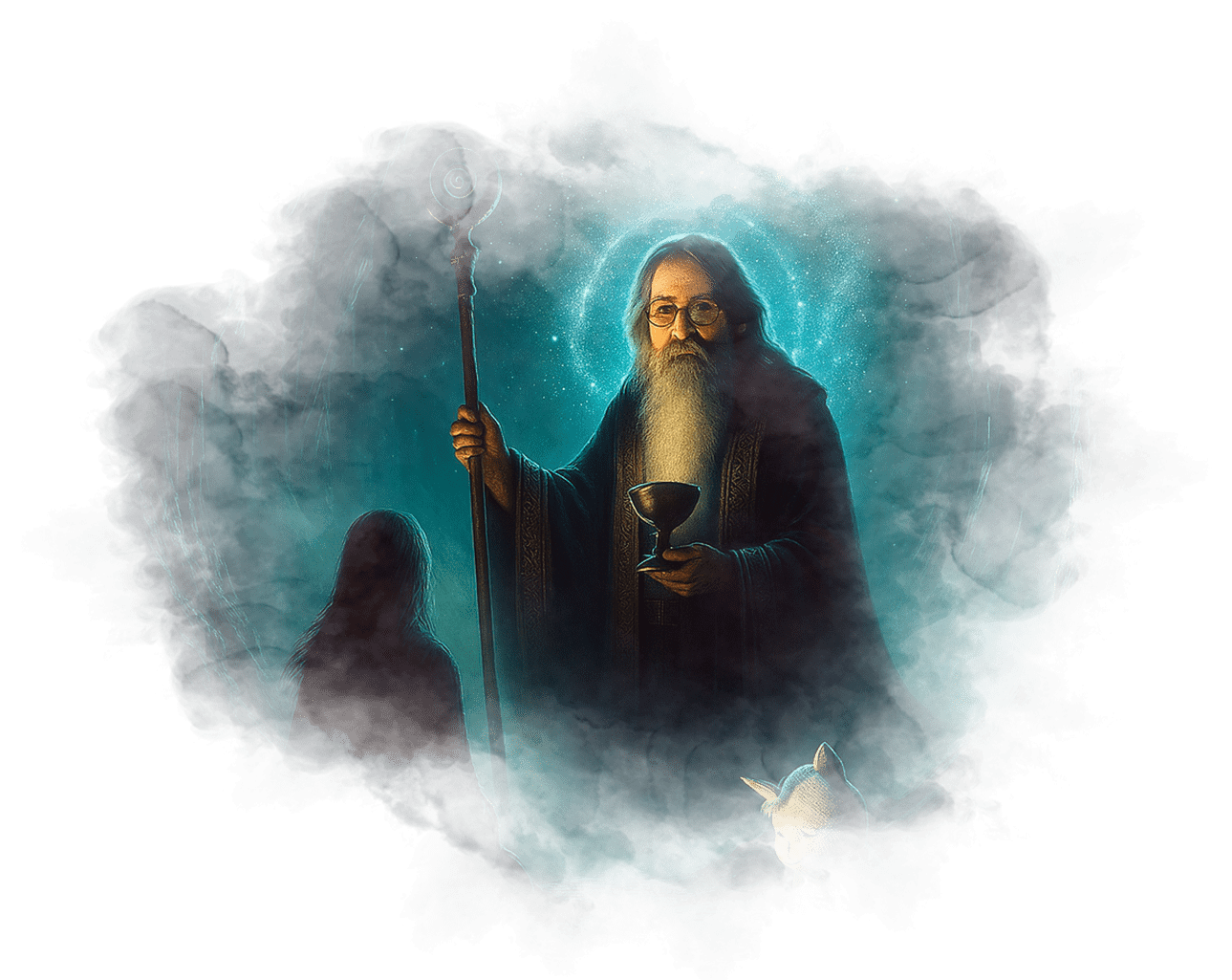 Его мех чистый и переливается светом, а глаза полны мудрости и любви.