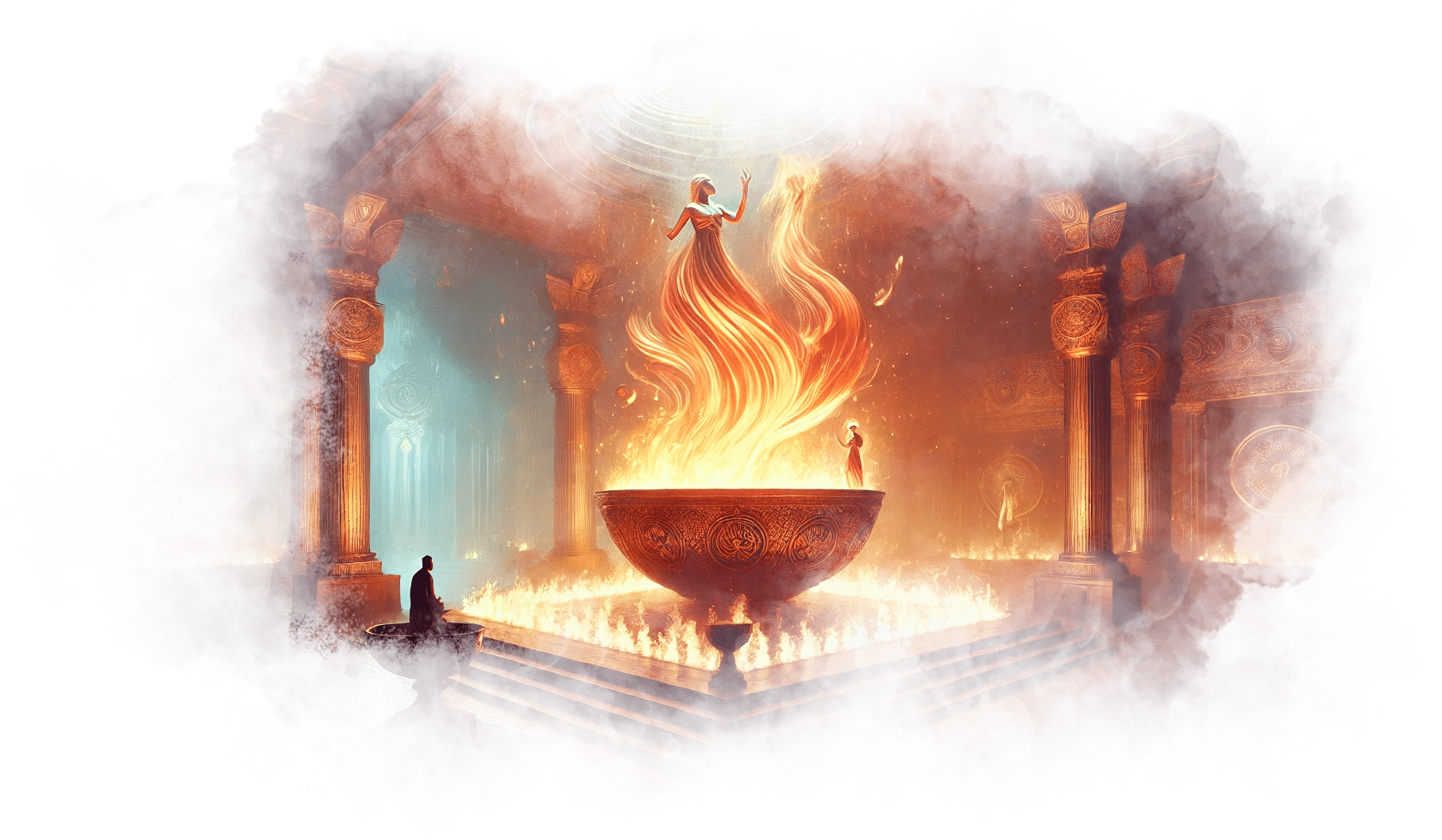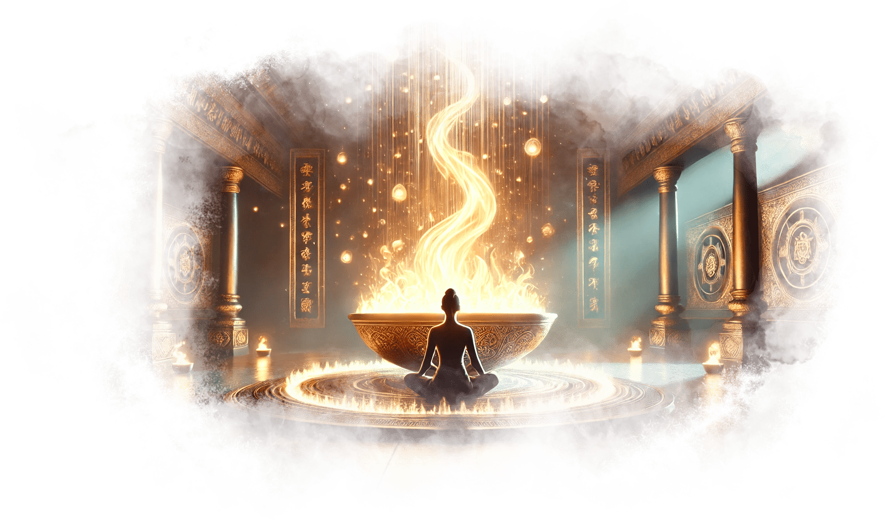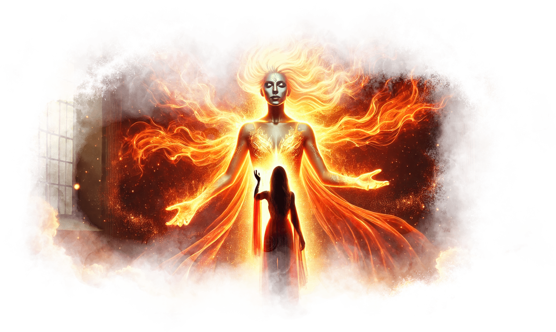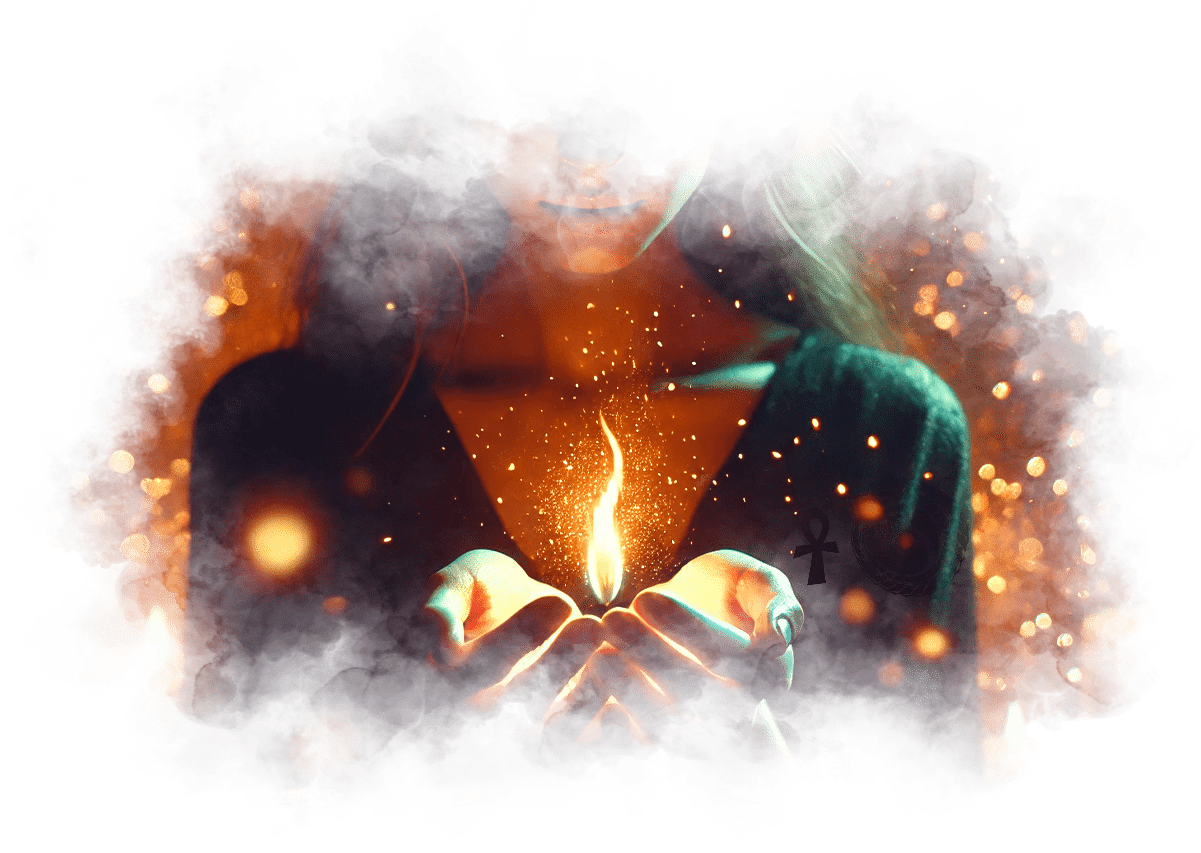 В её руках появляется маленькое пламя — тёплое, золотое, символ её благодарности и любви. Оно дрожит, но не гаснет.